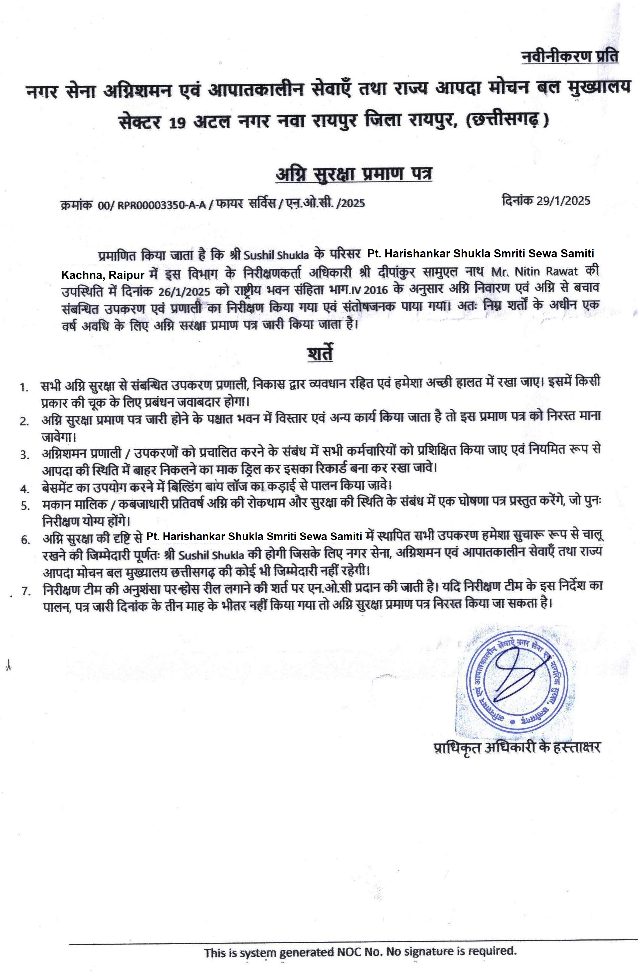 | 4 | Trust / society / company registration no.: 2593 | Pt. Harishankar Shukla Smriti Sewa Samiti | 08-01-2026 | Download | |