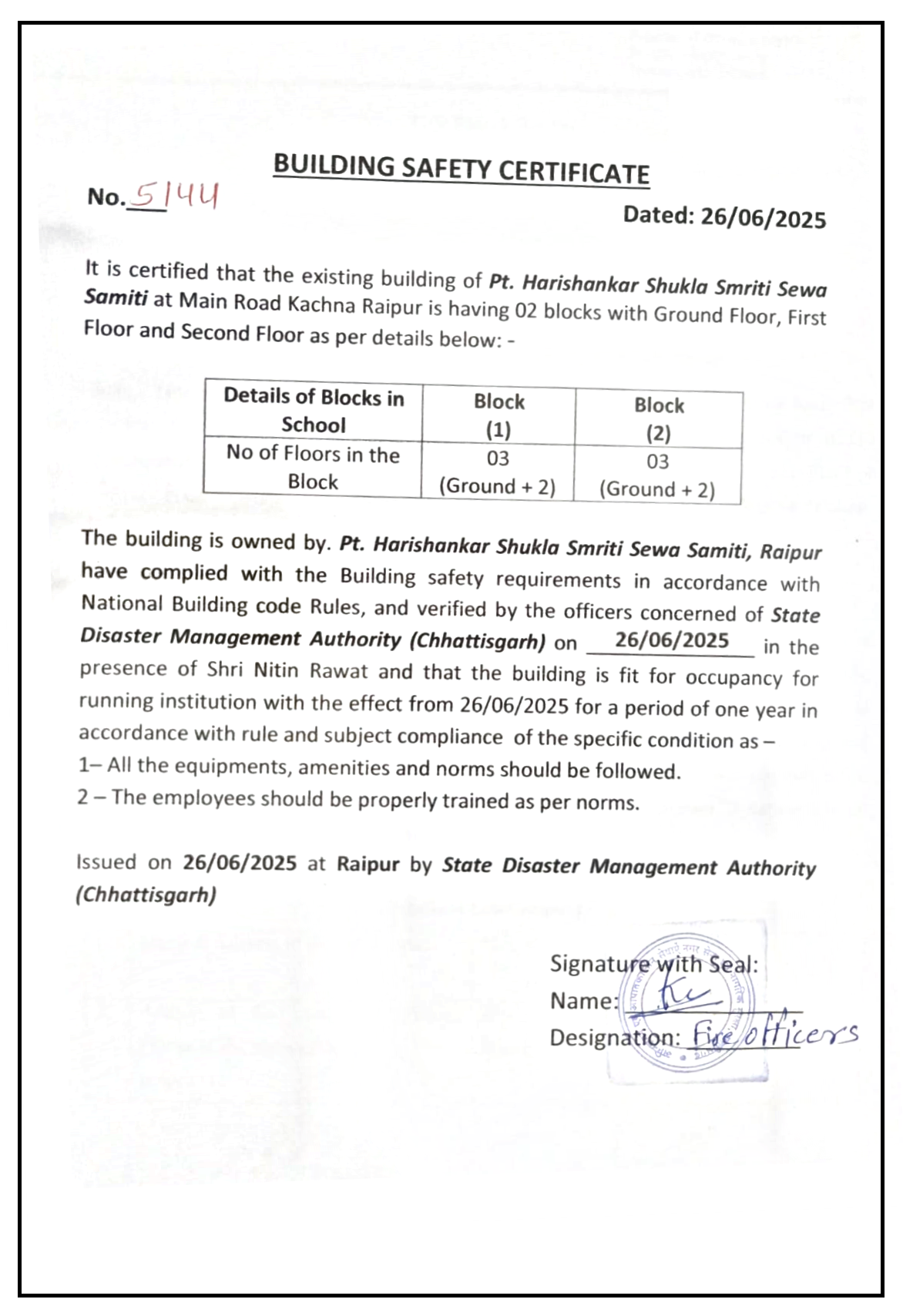 | 6 | Building safety certificate | Certificate no.: 5114 | PNG | 08-01-2026 | Download |